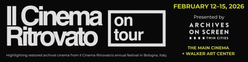 Il Cinema Ritrovato è un festival cinematografico internazionale che si tiene ogni anno a Bologna e presenta film restaurati e d’archivio. Archives on Screen è orgogliosa di collaborare con Il Cinema Ritrovato e la Cineteca di Bologna per curare una selezione dei film del festival per il pubblico delle Twin Cities.